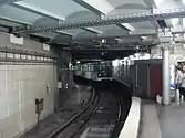 ![]() Восточная платформа станции. На фото видна полоса бывшего (до 2013 года) края платформы | |