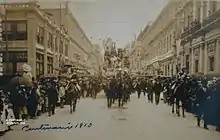 В 1910 году Порфирио Диас был в очередной раз переизбран президентом Мексики[24]. Его соперник лидер либерально-демократической оппозиции[29] Франсиско Мадеро отказался признать результаты выборов и призвал мексиканцев к борьбе с деспотическим режимом, выступив с «планом Сан-Луис-Потоси». Его программа предусматривала избавление Мексики от империалистического господства и возвращение крестьянам отнятых у них в период правления Диаса земель[24]. Восстание было назначено на 20 ноября 1910 года[49]. Хотя план рассматривал не все социальные вопросы, он стал катализатором для массовых народных выступлений[24]. Так было положено начало Мексиканской революции. 1 апреля 1911 года в очередном послании к Конгрессу Диас признал большинство требований повстанцев и пообещал провести аграрную реформу. Однако революционеры были настроены на решительную борьбу с режимом[50]. В мае Диас подал в отставку и эмигрировал во Францию. В июне под овации 100 тысяч горожан Мадеро въехал в столицу[51].