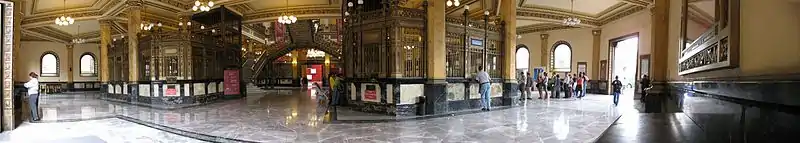Со второй половины XIX века доминирующим направлением в архитектуре Мексики становится эклектика, получившая название «порфиризм». Создается множество сооружений, перегруженных декором и скульптурами. Стремление догнать Европу стимулировало развитие градостроительства, создание более современного облика городов, в первую очередь Мехико[45]. В богатых кварталах столицы можно было встретить особняки во французском стиле, барочные здания опер и театров, многоэтажные офисные здания из железобетона и чугуна, засаженные деревьями бульвары со статуями, улицы освещенные электричеством и трамвайные маршруты. Основной тенденцией в архитектуре Мексики было обращение к европейским неиспанским образцам — английским, французским и немецким. Элементы модерна начали проникать в стиль зданий, окружавших Пасео-де-ла-Реформа. Классический дизайн использовался для Монумента независимости, памятника Хуаресу и статуи Колумба. Убеждение Диаса в необходимости создания общественных монументов в городском ландшафте положило начало традиции, продолжавшейся на протяжении всего XX века. Наиболее яркими были проявления неоромантического и неоготического стилей. Примерами которых могут служить Центральный почтамт и Дворец изящных искусств[46], видимо, имевший прототипом французскую Гранд-Опера[45]. Потеря официальной культурой ощущения национального характера привела к тому, что даже павильон Мексики на Международной выставке в Париже был выстроен в «мавританском стиле»[47].