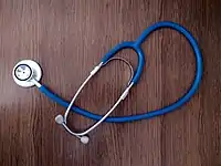 Стетоскоп медицинский, у промышленной модели мембрана на длинном полом стержне.
