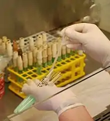 Для посевов[2] применяют микробиологические петли, реже — иглы и шпатели. Чаще всего для культивирования используются пробирка и чашка Петри. Универсальным инструментом для засева культуры является бактериальная петля. Помимо неё, для посева уколом применяют специальную бактериальную иглу, а для посевов на чашках Петри — металлические или стеклянные шпатели. Для посевов жидких материалов наряду с петлёй используются градуированная и пастеровская пипетки.