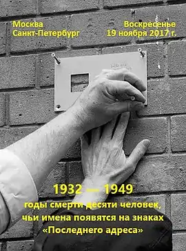 - «Последний адрес» в Петербурге: первые таблички. old.memo.ru. Дата обращения: 30 ноября 2017.