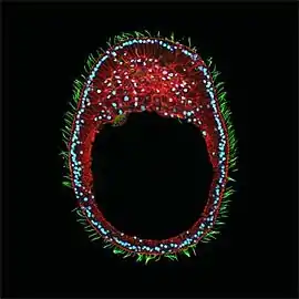 Иные гипотезы строения урметазои вращаются вокруг эмбриогенеза базальных животных, поскольку большинство личинок планул у книдарий (гипотеза планулы), личинок губок или простая конфигурация пластинчатых (гипотеза плакулы) напоминают о возможной колониальной организации жгутиконосцев. клетки, которые могли дать исходную конфигурацию урметазои. В настоящее время ведутся споры о том, была ли урметазоя похожа на гребневика, на губку или на пластинчатых.[7][2][8][9] Частично эта проблема связана с появлением новых технологий молекулярного анализа, которые указывают на то, что губки являются парафилетическими[1], то есть они не являются базальными в филогенетическом дереве, как считалось ранее. [6][7][10][11][12]
