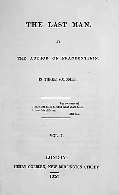 «Последний человек» — апокалиптический научно-фантастический роман Мэри Шелли, впервые опубликованный в 1826 году. Повествует о мире будущего, поражённом эпидемией. Роман был принят в штыки критикой своего времени и был почти не известен до всплеска научного интереса, начавшегося в 1960-х гг. Роман примечателен наличием в нём квазибиографических портретов персонажей эпохи романтизма из окружения автора, в том числе её покойного мужа Перси Шелли и Байрона.