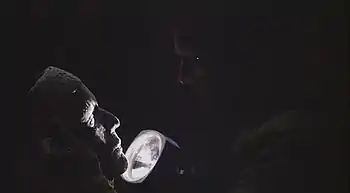 Дэвид понимает, что в комнате он не один. Из темноты за ним наблюдает сова. Секунду спустя из мрака выступает уже полунагой Чарли в ритуальном племенном наряде.[прим. 5] Дэвид, прихватив маску и какой-то жезл, пытается бежать, Чарли препятствует ему, начинается потасовка… Дальше зритель видит, как падает из его окровавленных рук магический предмет.[прим. 6] Пытаясь выбраться на поверхность, Дэвид блуждает по катакомбам, теряет в воде фонарь и маску, но находит дверь бункера накрепко запертой, бежит в другом направлении и наконец выбирается на берег моря через канализационную трубу. Выходит на побережье, омывает лицо океанской водой, поднимает глаза: над ним нависает гигантская волна… Или это ему только мерещится?