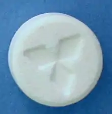 ![]() Таблетки «Экстази» | ![]() Иллюстрация размера таблетки |