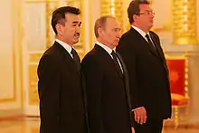 Посол Киргизии в России Раимкул Аттакуров (2008—2010) и Президент России Владимир Путин при вручении вверительных грамот (2008)