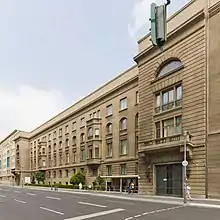 Здание было построено в сталинском стиле, называемом также социалистическим классицизмом, с элементами берлинского классицизма начала XIX века. В центре, немного в глубине внутреннего дворика, располагалось главное здание с портиком, симметрично по бокам — два других здания. Внутри здание было богато украшено, в центре находится используемый для торжественных приёмов и церемоний купольный зал со стеклянной мозаикой, который находится непосредственно под крышей здания в центре.