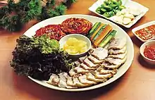 Поссам (кор. 보쌈, 褓-, bossam, possam) - корейское блюдо из отварной свинины. Мясо варят в рассоле, после чего подают на стол тонко нарезанным с гарниром. Гарнир может состоять из редьки, кимчхи, овощей; блюдо также может подаваться как ссам (мяса, завернутого в листовые овощи, такие как салат, листья перильи или пекинской капусты). Боссам является самым популярным блюдом в Корее, его также часто подают как закуску к алкоголю (анджу).