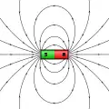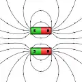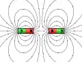 Схематичное изображение линий магнитного поля при взаимодействий двух магнитов в зависимости от расположения их полюсов (одинаковые полюса отталкиваются, разные — притягиваются):