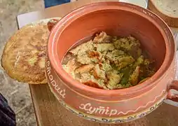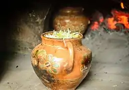 В этот раздел попадают горшочки для порционного приготовления блюд, разнообразные керамические ёмкости для тушения в духовке или микроволновой печи, а также весь спектр столовой посуды — кружки, тарелки, кувшины, миски и т. д. Серьёзным минусом кухонной посуды из керамики является невозможность её использования на варочных панелях, хотя есть и исключения, например, керамические жаровни и турки.