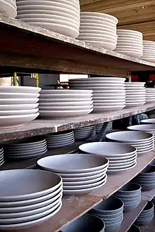 Из керамической посуды, вошедшей в русский быт, с глубокой древности и до наших дней широко используется столовая и чайная, изготовляемая из обожженной глины, фаянса и фарфора[1].
