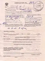 | Почтовые бланки извещения на посылку | ||||