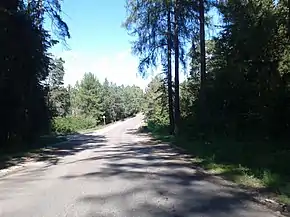 Шоссе 46K-1360 на подходе к посёлку (сам посёлок прямо по курсу, на левой стороне шоссе, за деревьями)