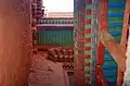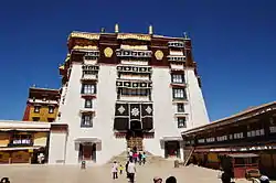 Нижний белый фасад на южной стороне дворца использовался для поднятия двух гигантских тханок, соединенных вместе, представляющих фигуры Тары и Шакьямуни во время фестиваля Сертренг в 30-й день второго тибетского месяца.[10][11]