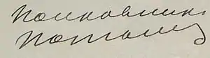 ![]() Подпись Потанина Ивана Николаевича из послужного списка от 18 января 1914 года | |