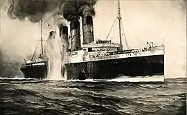 Потопление «Лузитании» — морская катастрофа Первой мировой войны. Британский лайнер, выполнявший гражданский рейс, в своей акватории был успешно поражён субмариной Германии в районе их повышенной боевой активности[3] 7 мая 1915 года. Погибло 1197 человек, из них — 128 граждан США. Этот прецедент послужил оправданием для американского участия в войне.