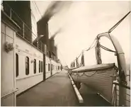 | Шлюпочная палуба «Лузитании» | «Лузитания» подходит к океанским докам Нью-Йорка, завершая первый рейс | «Лузитания» причаливает в Нью-Йорке 13 сентября 1907 года | «Лузитания» стоит на приколе в Нью-Йорке |