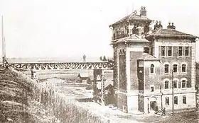 Здание комплексное. Соединяло в себе помещения для пассажиров, служебные квартиры и пост центрального управления стрелками. В этом районе железная дорога шла по высокой насыпи, поэтому от уровня 4 этажа вокзала к небольшому перрону вел ажурный чугунный мост (утрачен), по которому пассажиры проходили к поездам, как у вокзалов станций Воробьёвы горы и Пресня.
