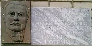 - Памятная доска (угловой дом на пересечении улиц Потемина и Юбилейной, 95), открыта 19.03.1982 г., автор Г. П. Контарев.