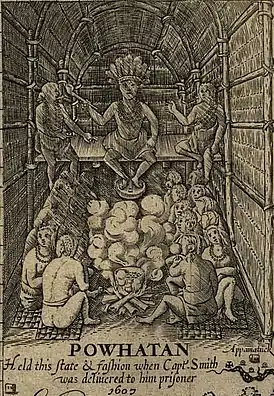 Поухатан, также известен под именем Вахунсунакок (1549, Ценокомоко[d] — 1618[1][2]) — вождь нескольких алгонкиноговорящих индейских племён на территории современного американского штата Виргиния. Одна из его жён, Хелева, была матерью Покахонтас. Умер в возрасте приблизительно 69 лет, имея, по сообщениям, 87 детей.