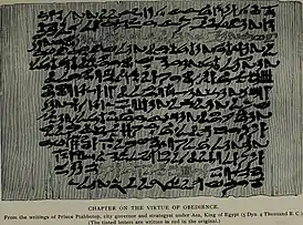 - Если ты начальник, отдающий распоряжения многим людям, стремись ко всякому добру, чтобы в распоряжениях твоих не было зла. Велика справедливость и устойчиво [всё] отличное. Неизменна она [справедливость] со времён [бога] Осириса, и карают нарушающего законы.
