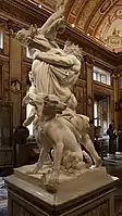 Специалисты отмечают также «искривлённый контрапост» (итал. contrapposto curvo). Такой приём является типичным для искусства маньеризма, например, в близкой по теме скульптурной группе «Похищение сабинянки» Джамболоньи (1581—1583), но у Бернини пластическое движение, в отличие от маньеристских образцов, проникнуто напряжением и мощью[10][11].