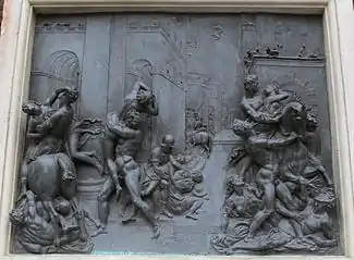 Условно предполагается, что композиция изображает сцену из римской легенды о похищении римлянами сабинских женщин (так называемая «Сабинская война»).