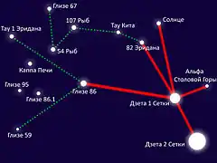 В 1968 году астроном-любитель Марджери Фиш из Оук-Харбора из штата Огайо в результате длительных поисков обнаружила звёзды, положение которых могло бы соответствовать рисунку Бетти. Фиш искала среди звёзд, расположенных на расстоянии 50 световых лет от Солнца, и среди тех, что, по мнению астрономов того времени, могли бы иметь пригодные для жизни планеты. Согласно её расчетам, существа, похитившие Хиллов, прилетели с планеты возле бинарной звёздной системы Дзета-1 и Дзета-2 созвездия Сетки. Существование этих планет на сегодняшний день у 54 Рыб и у 82 Эридана — из тех, которые указаны на этой карте, — доказано. При этом, согласно этой теории, один из торговых путей проложен к Солнцу.