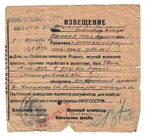 Случалось, что «похоронку» оформляли ошибочно, полагая, что человек погиб[3].