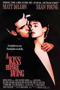 «Поцелуй перед смертью» (англ. A Kiss Before Dying) — американский эротический триллер 1991 года режиссёра Джеймса Дирдена, снятый по одноимённому роману Айры Левина 1953 года, получившему Премию Эдгара Аллана По 1954 года (это было первое вручение). В фильме снимались Мэтт Диллон, Шон Янг, Макс фон Сюдов и Дайан Ладд[4]. Роман был ранее экранизирован под тем же названием в 1956 году.