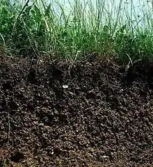 - Почвенный горизонт — специфический слой почвенного профиля, образовавшийся в результате воздействия почвообразовательных процессов[9].