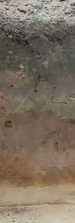 - Почвенный профиль — совокупность генетически сопряжённых и закономерно сменяющихся почвенных горизонтов, на которые расчленяется почва в процессе почвообразования. Почвенный профиль- вертикальный разрез почвы от поверхности до материнской породы(грунтовой)[9].