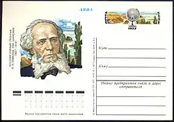Художественная односторонняя почтовая карточка с оригинальной маркой, посвящённая географу П. П. Семёнову-Тян-Шанскому (СССР, 1977, 4 копейки)