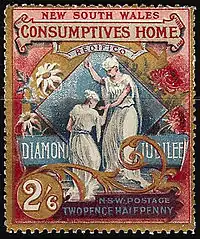 Первые почтово-благотворительные марки были выпущены в 1897 году в двух бывших британских колониях — Виктории[1] и Новом Южном Уэльсе (Австралия). Это были две юбилейные серии к 60-летию коронации английской королевы Виктории. Разница в стоимости в Виктории предназначалась на организацию больницы для бедных, а в Новом Южном Уэльсе — на строительство специальной больницы для лечения больных туберкулёзом. На марках Виктории упоминаний о благотворительном характере выпуска не было, обозначен лишь почтовый номинал, а продажная стоимость (12-кратная) не указана. На марках Нового Южного Уэльса проставлены и стоимость почтового сбора, и продажная цена.