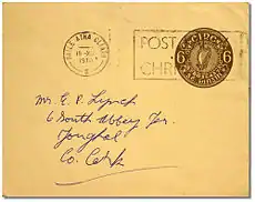 Сразу после обретения независимости для использования на территории Ирландии были напечатаны конверт заказного письма с маркой номиналом в 5 пенсов и с портретом Георга V и бланк телеграммы с маркой номиналом в 1 шиллинг в зелёном цвете. Они имели обращение, пока не были изготовлены собственные служебные цельные вещи. Ирландские бланки телеграмм были только двух номиналов — 1 шиллинг и 1 шиллинг 6 пенсов. Конверты заказных писем имели разные номиналы и размеры. Печатные (но без марок) конверты заказных писем делались частными фирмами и хранились ирландским почтовым ведомством, пока не понадобятся. По этой причине на конвертах прежних лет, надписи на которых указывали устаревшие цены, зачастую печаталась марка действующего почтового тарифа, что привело к появлению множества подтипов для коллекционеров. Оттиски знака почтовой оплаты печатались и на другой продукции, такой как памятные и специальные почтовые карточки. В их число входит серия карточек ко Дню святого Патрика, которые ежегодно поступают в продажу начиная с 1984 года[36].