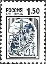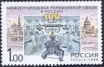 100 лет междугородной телефонной связи, открытой в России в 1898 году между Москвой и Санкт-Петербургом. Телефонный аппарат «Эрикссон» на фоне коммутаторного зала телефонной станции (начало ХХ в.), Беклемишевская (Москворецкая) башня Московского Кремля (1487), Исаакиевский собор в Санкт-Петербурге (1818—1858). | 1.00 руб. |