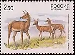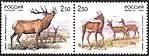 Фауна. Олени. Совместный выпуск России и Китая. Изюбрь (Cervus elaphus xanthopygus), распространённый в горах Восточной Сибири и Дальнего Востока: