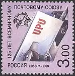 125 лет Всемирному почтовому союзу. Машинная обработка почтового конверта, аббревиатура UPU, эмблема ВПС. | 3.00 руб. |