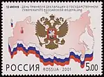 12 июня — День принятия Декларации о государственном суверенитете Российской Федерации. Государственный герб Российской Федерации на фоне карты России, нижняя часть которой обрамлена лентой, имеющей цвета российского флага. | 5.00 руб. |
