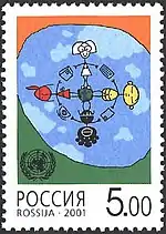 2001 год — год диалога между цивилизациями под эгидой Организации Объединенных Наций. Совместный выпуск всех почтовых администраций — членов Всемирного почтового союза. Рисунок, символизирующий диалог между цивилизациями, укрепление дружбы между народами, решение международных проблем экономического характера, соблюдение прав человека и основных свобод для всех. | 5.00 руб. |