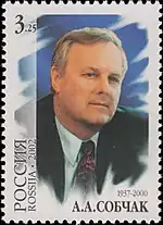 65 лет со дня рождения Анатолия Александровича Собчака (1937—2000), мэра Санкт-Петербурга (1991—1996). | 3.25 руб. |
