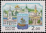 850 лет Костроме. Здания торговых рядов и пожарной каланчи, Ипатьевский монастырь, герб города Костромы. | 2.00 руб. |