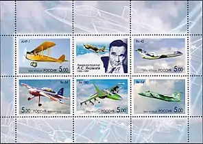 - № 1093—1097. Самолеты ОКБ им. А. С. Яковлева. К 100-летию со дня рождения А. С. Яковлева, авиаконструктора. АО «Марка». Дата обращения: 17 апреля 2018.