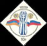 Год Республики Армения в Российской Федерации. Совместный выпуск. Скульптура Ф. М. Согояна и В. Ф. Согояна «Единый Крест», символизирующая дружественные отношения двух государств. | 10.00 руб. |
