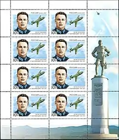 100 лет со дня рождения Г. Я. Бахчиванджи (1909—1943), летчика-испытателя. Портрет Г. Я. Бахчиванджи и модель самолета БИ-1. | 10.00 руб. |