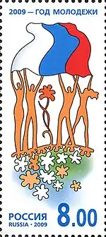 2009 — Год молодежи. Всероссийский конкурс рисунка «Отчизне посвятим». «Молодёжь построит цветущую Россию» рисунок И. Николаева (г. Омск). | 8.00 руб. |