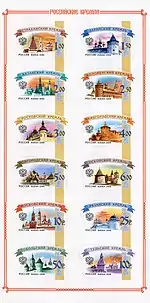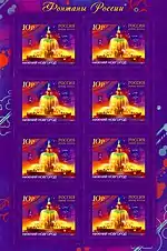 Шестой выпуск стандартных почтовых марок Российской Федерации: | 1.00 1.50 2.00 2.50 3.00 4.00 5.00 6.00 10.00 25.00 50.00 100.00 руб. |