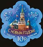 С Новым годом! Спасская и Сенатская башни Кремля, купол Сената на фоне стилизованной снежинки. | 9.00 руб. |