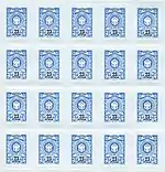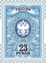 Тарифная марка с номиналом 23 рубля. Эмблема организаций федеральной почтовой связи Российской Федерации с орнаментальной рамкой и номинал 23 рубля. | 23 руб. |